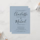Con nombres de estilo de firma, esta elegante y moderna invitación simple para una fiesta de compromiso puede ser personalizada con su información en letras elegantes sobre un fondo azul polvoriento. Diseñado por Thisisnotme©