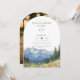 Esta elegante invitación de arco para fiesta de compromiso con flores silvestres de montaña en acuarela puede ser personalizada con su información en tipografía chic y una foto especial en el reverso. Diseñado por Thisisnotme©