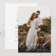 La invitación de la fiesta de compromiso con foto de escritura de caligrafía moderna presenta una superposición de escritura de caligrafía moderna, junto con los detalles de su fiesta en la parte posterior.