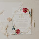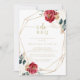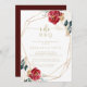 Esta invitación geométrica floral de oro "I Do" BBQ engagement es perfecta para una fiesta de compromiso rústico, cena de ensayo, ducha de parejas, después de un fiesta o cualquier evento de boda. El diseño se compone de acuarelas blancas, burdeos y flores doradas y bayas de vegetación verde dispuestas en elegantes ramos.