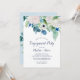 Esta clásica invitación a la fiesta de compromiso con las flores blancas es perfecta para un evento de primavera. El elegante diseño floral presenta rosales blandas de marfil y blanco, peonías y crisantemo con toques de flores de acuarela azul perwinkle y follaje verde.