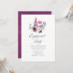 Invitaciones de fiesta de compromiso con cata de vino con flores boho de violeta, melocotón y ciruela pintadas a mano con acuarela diseñadas para ser personalizadas rápida y fácilmente según los detalles de su evento.