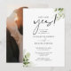 Esta elegante invitación de compromiso de flores de vegetación puede ser personalizada con su información en tipografía chic con su foto en el reverso. Diseñado por Thisisnotme©