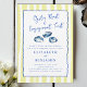 ¡Celebra el amor con el encanto de la costa! La moderna y minimalista "Oyster Roast & Engagement Toast" propone una caligrafía moderna con tres ilustraciones de ostras azules brillantes, marco dibujado a mano y franjas dibujadas a mano en amarillo limón para un aspecto fresco y sencillo. Perfecto para una fiesta de compromiso náutico, una celebración junto al mar o una reunión asada de ostras, este elegante diseño marca la pauta para un evento relajado y sofisticado.
