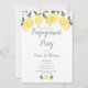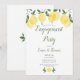 Con vegetación de limones modernos, esta invitación de fiesta de compromiso botánica y chic puede ser personalizada con la información de su evento especial. El reverso tiene un monograma con las iniciales de la feliz pareja. Diseñado por Thisisnotme©
