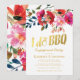 Invitaciones de fiesta de compromiso de barbacoa con un clásico fondo blanco, muestra floral de acuarela, un título tipográfico de falso foil dorado elegante y una plantilla moderna de "te amo, barbacoa".