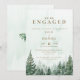 Esta invitación de fiesta de compromiso en bosque de pinos con acuarela elegante y rústica puede ser personalizada con su información en tipografía moderna. Diseñada por Thisisnotme©