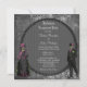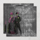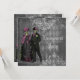 Invitaciones frescas y espeluznantes del fiesta de compromiso de Halloween con una novia esquelética y un novio del horror gótico fantástico. Visten a la novia en un vestido hermoso del negro del vintage, rosado y verde de boda con las flores y los ornamentos de la mariposa. El novio es elegante en su sombrero de copa, colas y bastón. El fondo es un negro elegante del gótico del vintage, gris y el collage elegante lamentable blanco con las decoraciones blancas adornadas de la voluta, una libélula, antigüedad se descoloró escritura y modelo elegante del harlequin. En el revés de estos el gótico enrrollado invita es las perlas y estera negras impresas atractivas del cordón con el texto para que usted personalice con sus detalles del acontecimiento. La diversión con clase, de moda invita. Tengo productos a juego en mi tienda. Todo el texto se puede modificar para requisitos particulares fácilmente para cubrir sus necesidades y usted puede cambiar el estilo, el color y el tamaño de fuente de la fuente si usted desea. Si usted necesita alguna ayuda que modifica su producto para requisitos particulares me entra en contacto con por favor a través de mi tienda y me placeré ayudar. La estera de la perla por el ©Hazel Kinvig-Paul www.design-a-dream.co.uk satisface observa - toda invita en Zazzle tiene imágenes impresas del plano.