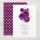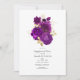 Invitación personalizable para una fiesta de compromiso de boda floral dorada y morada según los detalles de su evento.