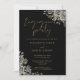 Invitación Fiesta de compromiso floral gótico negro y dorado