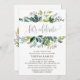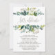 Esta tarjeta de invitación para una fiesta de compromiso con el texto "vamos a celebrar" rodeada de follaje es perfecta para un evento rústico. El diseño cuenta con un marco boho de hojas verdes y elementos botánicos de follaje. La parte posterior presenta una corona campestre a juego con las palabras "vamos a celebrar" en una fuente de caligrafía moderna preciosa. Esta invitación es perfecta para una fiesta de compromiso, despedida de soltera o cualquier evento o fiesta.