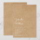 Un diseño moderno y simple que presenta los nombres de la feliz pareja en una elegante escritura sobre los detalles especiales de la fiesta de compromiso en un fondo boho kraft. Diseñado por Thisisnotme©