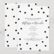 Lunares negros y blancos divertidos están esparcidos alrededor de los detalles de tu fiesta de compromiso personalizados en esta invitación de compromiso moderna y elegante. Diseñada por Thisisnotme©