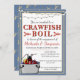 Esta invitación de cangrejos de río azules y dorados es personalizable para tu evento especial. Con un fondo azul verdoso con perlas doradas y cangrejos de río, este diseño es perfecto para tu fiesta de compromiso, graduación, cumpleaños o cualquier evento que estés organizando. Los cangrejos de río ilustrados con estilo de dibujo animado junto con luces parpadeantes en la parte frontal añaden un toque divertido a las fuentes serif y manuscritas. La palabra "cangrejos de río" también es personalizable a cualquier "olla" que puedas tener, incluyendo mariscos, langosta, cangrejo, etc.