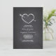 Invitación moderna pero vintage a la fiesta de compromiso con el sketch del corazón de amor de pizarra y diseño de tipografía simple pero lindo. Se ve casual, elegante y original.