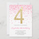 Fiesta de Confeti Rosa Número Dorado Cumpleaños Niña 4 Años