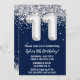 Invitación Fiesta de cumpleaños 11 de Navy Blue Silver