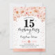 15.ª invitación a la fiesta de cumpleaños. Elegante diseño en falso oro rosa purpurina con acento floral. Invitar a la tarjeta con tipo de letra de guión y con contenido. Rosa de coral Rubor, blanco. Perfecto para una elegante celebración de los 30 días. Mándame un mensaje si necesitas edad personalizado.