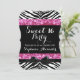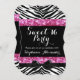 ¡Sólo tiene una oportunidad de tener dieciséis años! Invitación en forma de abanico con imprenta caprichosa. Celebra la fiesta de cumpleaños de la joven diva con estilo con esta invitación a imprimir en blanco y negro de cebra caliente. Impresión de aspecto purpurina brillante rosa, contrastada por un blanco y negro salvajes con una fresca huella de cebra.