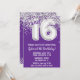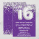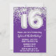 Púrpura y dulce de plata 16ª invitación de fiesta de cumpleaños 16 invitaciones para una fiesta de cumpleaños para un niño o chica con escritura moderna y globos de Relieve metalizado divertidos.