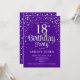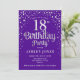 Invitación a la fiesta de cumpleaños número 18. Elegante diseño en púrpura real y purpurina de plata falsa. Presenta un diseño elegante de tipo de letra y letra de guión. Mándame un mensaje si necesitas edad personalizado.