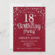 Invitación a la fiesta de cumpleaños número 18. Elegante diseño en rojo y falsa plata purpurina. Presenta un diseño elegante de tipo de letra y letra de guión. Mándame un mensaje si necesitas edad personalizado.