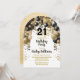 Celebre con estilo esta vibrante y llamativa invitación a la fiesta de cumpleaños número 21, que presenta un impresionante diseño de un arco de globo en cascada en tonos negros y dorados, y acentuado con blanco. El audaz "21" del centro añade un toque lúdico pero moda, marcando perfectamente el tono para una celebración memorable. El diseño incorpora un elegante texto blanco y negro, complementado con sutiles acentos dorados, todo cuidadosamente arreglado en una mezcla de fuentes retro y script que realzan el ambiente festivo. Esta invitación es cuidadosamente elaborada para evocar emoción y alegría, lo que la convierte en la elección perfecta para celebrar este cumpleaños histórico con estilo.