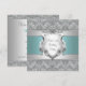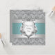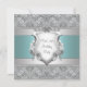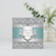 Invitación de cumpleaños 21 para mujer con escudo de floritura blanca plateada y azul turquesa elegante.