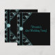 Invitación a la fiesta de cumpleaños 21 de mujer con damasco azul turquesa y negro.