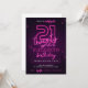 Diseñada para nuestras invitaciones de cumpleaños de neón rosado, esta tarjeta de invitación al personalizable presenta texto de color neón, decoración de neón y fondo morado. Elementos coincidentes disponibles.
