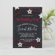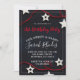 Una moderna y única invitación para una fiesta de cumpleaños para un joven chica con una invitación dulce y fresca, estrellas blancas y cuerdas rojas en negro, con un moderno tipo de escritura blanca. Personalizar de cualquier edad. Un rojo fresco sobre el tema del color de diseño negro. Fresco y joven.