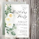 Celebre un hito especial con esta elegante invitación de cumpleaños número 21 que presenta rosas blancas románticas y un suave follaje de eucalipto. Este sofisticado diseño floral combina un estilo botánico atemporal con tipografía moderna, creando una hermosa invitación para una elegante celebración de cumpleaños.