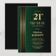 Invitación Fiesta de cumpleaños 21 negro verde con rayas dora