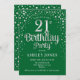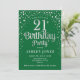 Invitación a la fiesta de cumpleaños número 21. Elegante diseño en verde selva esmeralda y falsa plata purpurina. Presenta un diseño elegante de tipo de letra y letra de guión. Mándame un mensaje si necesitas edad personalizado.