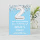 Invitación de fiesta de 2º cumpleaños azul claro y plata de 2 años de edad 2 cumpleaños con escritura de escritura purpurina y escritura moderna y globos de Relieve metalizado divertidos.