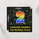 La parte delantera de este divertido, vibrante y colorido diseño de invitación para fiestas de cumpleaños presenta un gran número "2" con un patrón inspirado en el gradiente del espectro arcoiris, junto con un nombre editable y el mensaje "¡Fiesta de cumpleaños número 2!". Parte del fondo cuenta con un divertido patrón de varias notas musicales y símbolos con una variedad de colores y tamaños. En la parte posterior se ofrece información de personalizable/detalles sobre el evento al que se invita a los clientes potenciales. Tarjetas invitadas felices y editables para la celebración de cumpleaños como esta pueden ser usadas cuando se invita a los invitados a asistir a una celebración que se lleva a cabo para honrar el segundo cumpleaños de alguien. [~Z0000427]