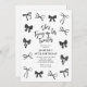 Haga que su evento de cumpleaños sea inolvidable con nuestras invitaciones de cumpleaños Coquette 30. Estas invitaciones están bellamente diseñadas con elegantes arcos de color negro y una elegante plantilla de texto que incluye el título "está atando sus 20 años".