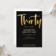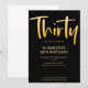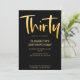 Presentamos una nueva invitación de cumpleaños 30 moderna y elegante, fondo negro con texto tipográfico manuscrito en oro "treinta". Personalice esta tarjeta de plantilla agregando la información de su fiesta.