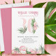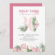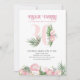Invitación de cumpleaños 30 con número 30 decorado con hojas de palma tropicales, flores de protea rosadas y un coco. Diseño femenino y elegante con arreglos florales de acuarela en tonos de rosa y verde. Perfecto para la celebración de cumpleaños 30, fiesta hawaiana o té de jardín.