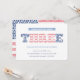 Invitaciones de 3 años de color rojo blanco y azul inspiradas en los días de verano y, por supuesto, las estrellas y las franjas! Los elementos frutales de los "TRES" fueron pintados originalmente por mí en acuarelas antes de ser arreglados digitalmente. ¡Este diseño unisexo funcionaría bien para un niño o una niña pequeña o por supuesto TWINS!