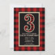 Invitación Fiesta de Cumpleaños 3RD Plaid Búfalo Rojo Rústico