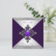 Invitación de cumpleaños cuarenta elegante de mujer con joya plateada y morada y envoltura de terciopelo rico