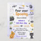 Invitación a la fiesta de cumpleaños 4 años fantasma lindo de Halloween espeluznante