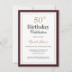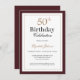Invitación Fiesta de Cumpleaños 50 Clásico Dorado Borgoña