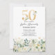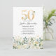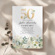Invitación Fiesta de cumpleaños 50 con flores verdes y blanca