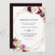 Esta invitación a la fiesta de cumpleaños 50 geométrica y dorada es perfecta para una celebración de cumpleaños moderna. El diseño se compone de elegantes ramos de flores verdes, ruidosas, violetas, rojas y burdeos, marcos geométricos dorados, clase inspiradora y belleza.