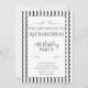 Esta es una invitación moderna para una fiesta de cumpleaños número 50. Tiene tipografía de moda en negro y blanco con acentos de corazones en espiral y líneas onduladas. En la parte delantera dice "Estás Invitado a la Fiesta de Cumpleaños número 50 de Alejandría", con información sobre la fecha, lugar y detalles de RSVP debajo. El texto está enmarcado por corazones en espiral elegantes. Este diseño elegante y moderno es perfecto para tu fiesta de cumpleaños número 50 o celebración. Simplemente escribe tus detalles, nombre, edad, fecha, lugar y información de RSVP, en esta casilla de texto personalizable. Aquí también puedes cambiar el resto del texto si lo deseas. Para cambiar el color o la fuente, consulta la herramienta de edición de diseño. Contacta al diseñador para obtener ayuda con productos coincidentes, personalización y customización.