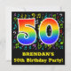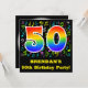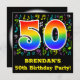 La parte delantera de este divertido, colorido y emocionante diseño de invitación para fiestas de cumpleaños incluye un gran número de "50" con un patrón inspirado en el gradiente del espectro arcoiris, junto con un nombre de personalizable y el mensaje "¡Fiesta de cumpleaños número 50!". Parte del fondo cuenta con un divertido patrón de varias notas musicales y símbolos con una variedad de colores y tamaños. En la parte posterior se presentan detalles/información personalizados relativos al evento al que se invita a los clientes potenciales. Alegres tarjetas de invitación a la celebración de cumpleaños de personalizable como esta podrían ser usadas cuando se invita a los invitados a asistir a una reunión que se lleva a cabo para celebrar el compositor de una canción, el de un músico, el de un cantante o el cumpleaños número cincuenta de otra persona. [~Z0000427]