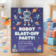 Un diseño adorable con robots en el espacio. ¡Personaliza los detalles para una elegante celebración de cumpleaños!