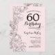 Invitación Fiesta de cumpleaños 60 de Rubor Pink Floral